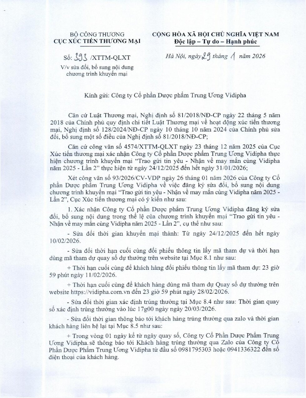THÔNG BÁO VỀ VIỆC SỬA ĐỔI, BỔ SUNG NỘI DUNG CHƯƠNG TRÌNH KHUYẾN MÃI "TRAO GỬI TIN YÊU- NHẬN VỀ MAY MẮN NĂM 2025- lần 2"