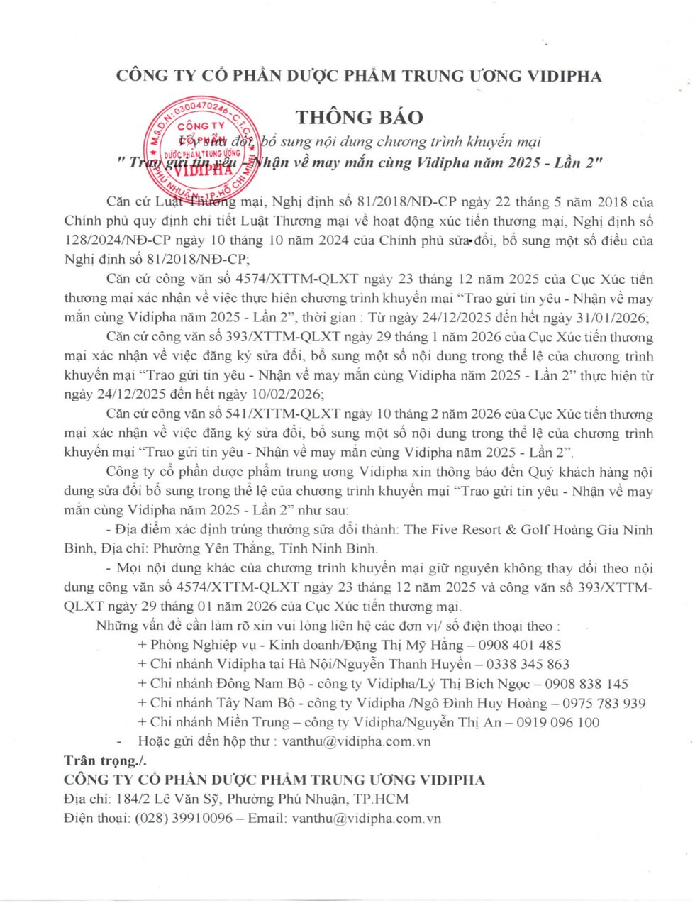 Xem chi tiết SỰ KIỆN NỔI BẬT Thông báo kết quả trúng thưởng Chương trình khuyến mãi: "Trao gửi tin yêu- Nhận về may mắn cùng Vidipha năm 2025"