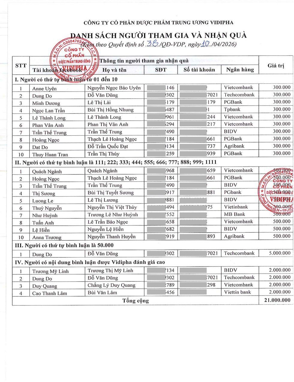 Xem chi tiết SỰ KIỆN NỔI BẬT THÔNG BÁO KẾT QUẢ TRÚNG THƯỞNG CHƯƠNG TRÌNH "TRAO GỬI TIN YÊU- NHẬN VỀ MAY MẮN CÙNG VIDIPHA NĂM 2025- LẦN 2"